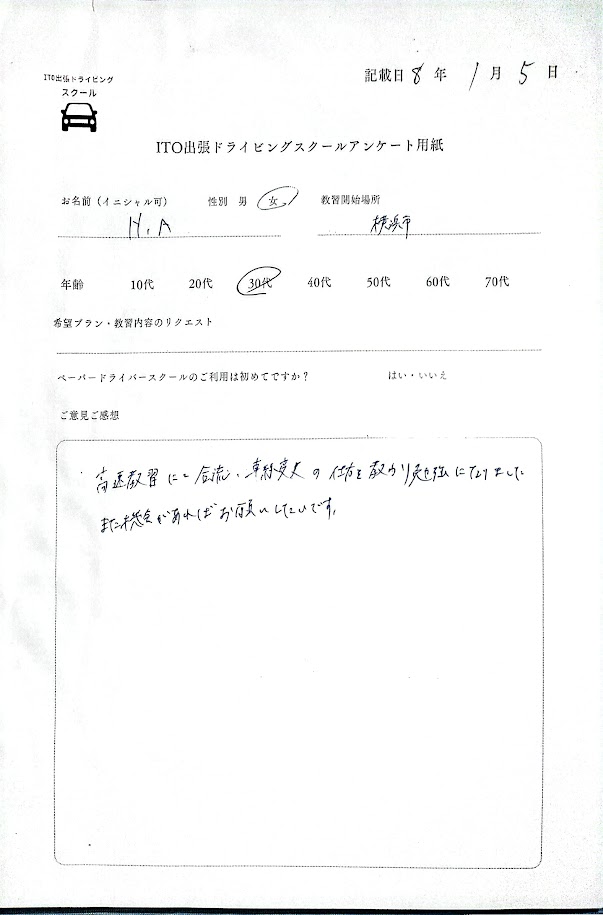 横浜市青葉区 女性A様 ブランク5年以上 高速教習を受講しました!