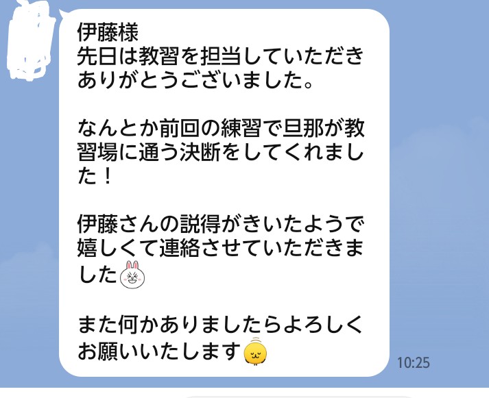 過去に旦那様の免許取得に貢献できたという成功報告も来ております。