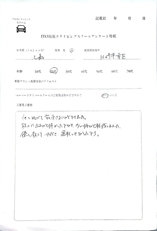 路上に出るのが怖かったのですが少し怖さが軽減されました。優しく教えていただき運転しやすかったです。